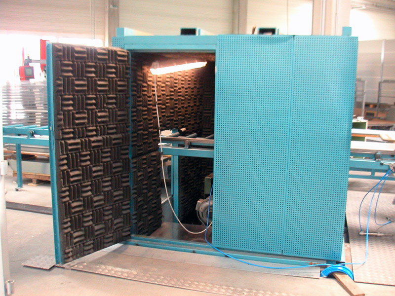 Ausführung: freistehende Schalleinhausungen oder in Anlagen integrierte Schalleinhausungen, deren nicht brennbare Innenauskleidung auf den gewünschten Schalldruckpegel abgestimmt wird. Die Funktion der Maschinen wird durch die Schalleinhausung nicht beeinträchtigt.